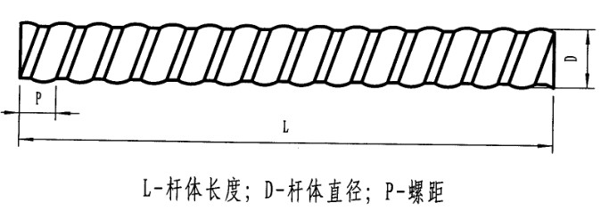 全螺紋式樹脂錨桿玻璃纖維增強(qiáng)塑料桿體是由全螺紋桿體與托盤、螺母等組成,桿體材料為玻璃纖維增強(qiáng)塑料,桿體結(jié)構(gòu)如圖1所示。