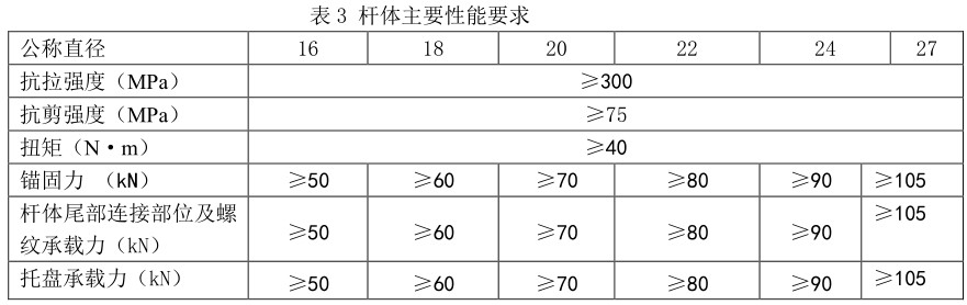 示例:公稱直徑為20mm,長度為1800mm,桿體尾部結(jié)構(gòu)為非金屬材料的全螺紋式樹脂錨桿玻璃纖維增強(qiáng)塑料桿體,可標(biāo)記為MGSL20/1800F。